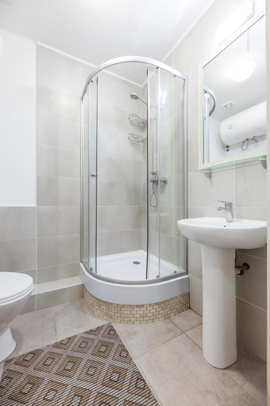 Apartment with Shower. Boasting a private entrance, this air-conditioned apartment features 1 bedroom and 1 bathroom with a hairdryer. Guests can make meals in the kitchenette that has a stovetop, a refrigerator, a microwave and a tea and coffee maker. The apartment features a washing machine, a dining area, a wardrobe, a sofa and a flat-screen TV. The unit has 1 bed.