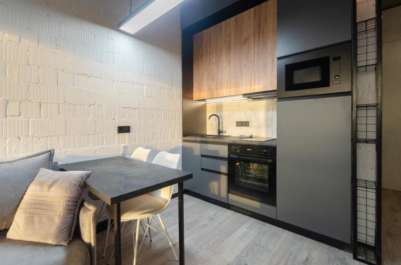 One-Bedroom Apartment. This apartments standout feature is the fireplace. The air-conditioned apartment features 1 bedroom and 1 bathroom with a shower and a hairdryer. In the well-fitted kitchenette, guests will find a stovetop, a refrigerator, kitchenware and an oven. The apartment offers a washing machine, soundproof walls, a seating area, a wardrobe and a flat-screen TV. The unit offers 1 bed.