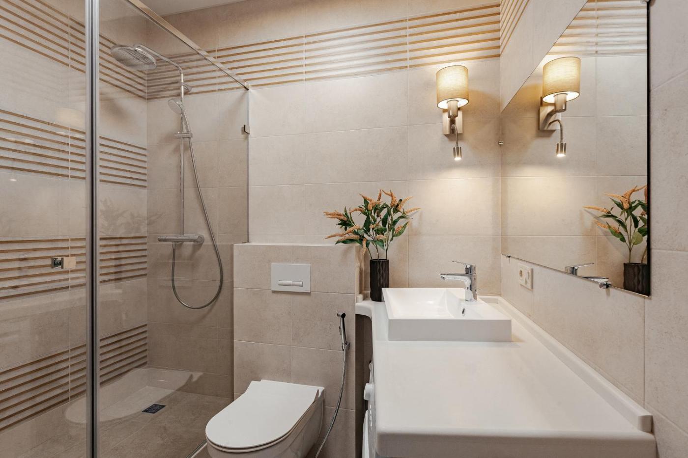 The apartment features 2 bedrooms, a flat-screen TV, a fully equipped kitchen with an oven and a microwave, a washing machine, and 1 bathroom with a walk-in shower. At the apartment, there is a dressing room for guests to change in.