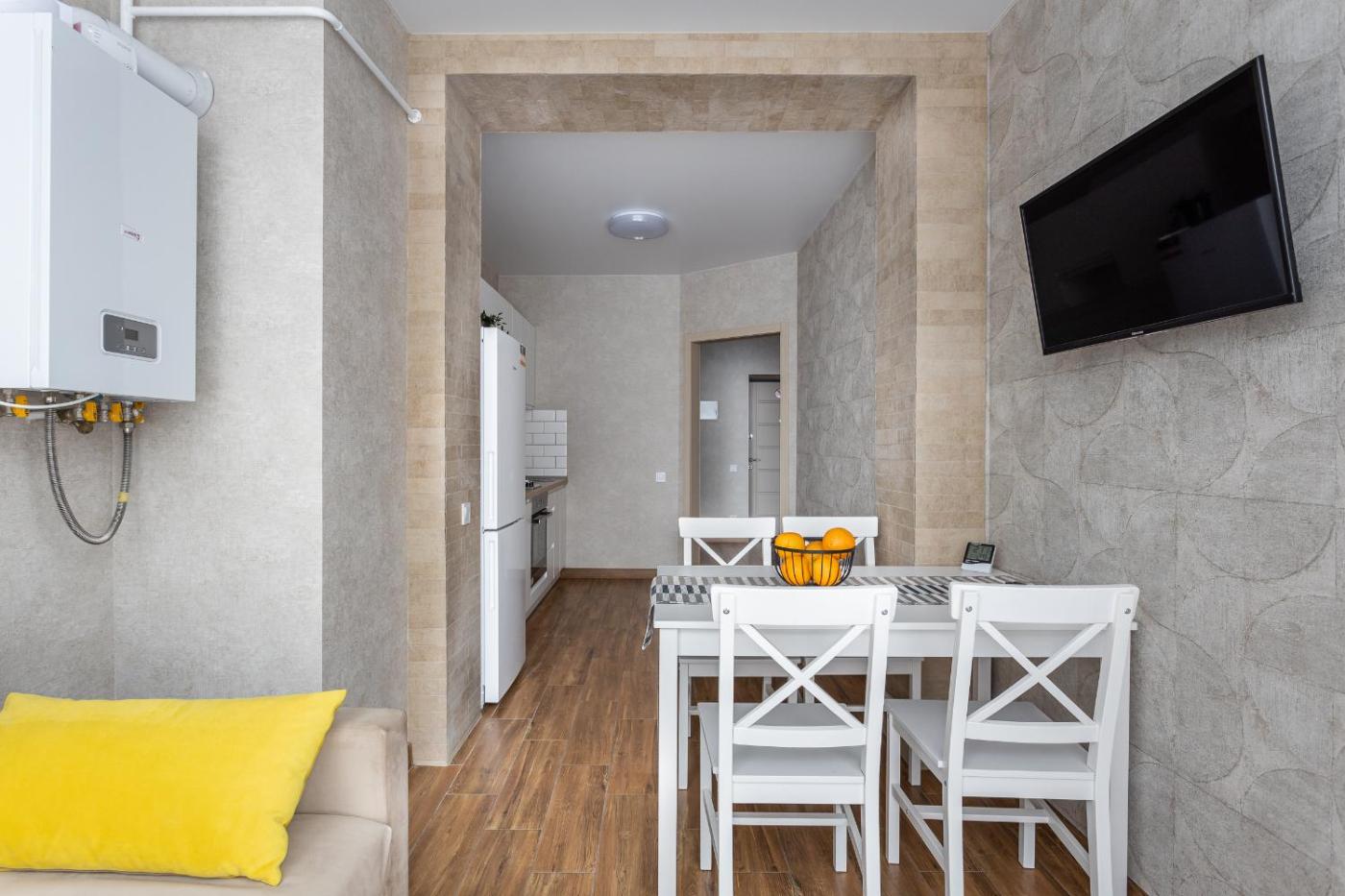 One-Bedroom Apartment. The air-conditioned apartment has 1 bedroom and 1 bathroom with a bath and a shower. In the kitchen, guests will find a stovetop, a refrigerator, an oven and a microwave. The apartment features a washing machine, a wardrobe, an electric kettle, a flat-screen TV, as well as city views. The unit has 1 bed.