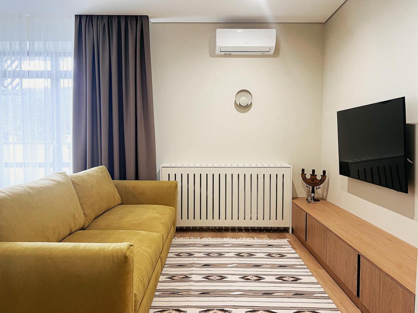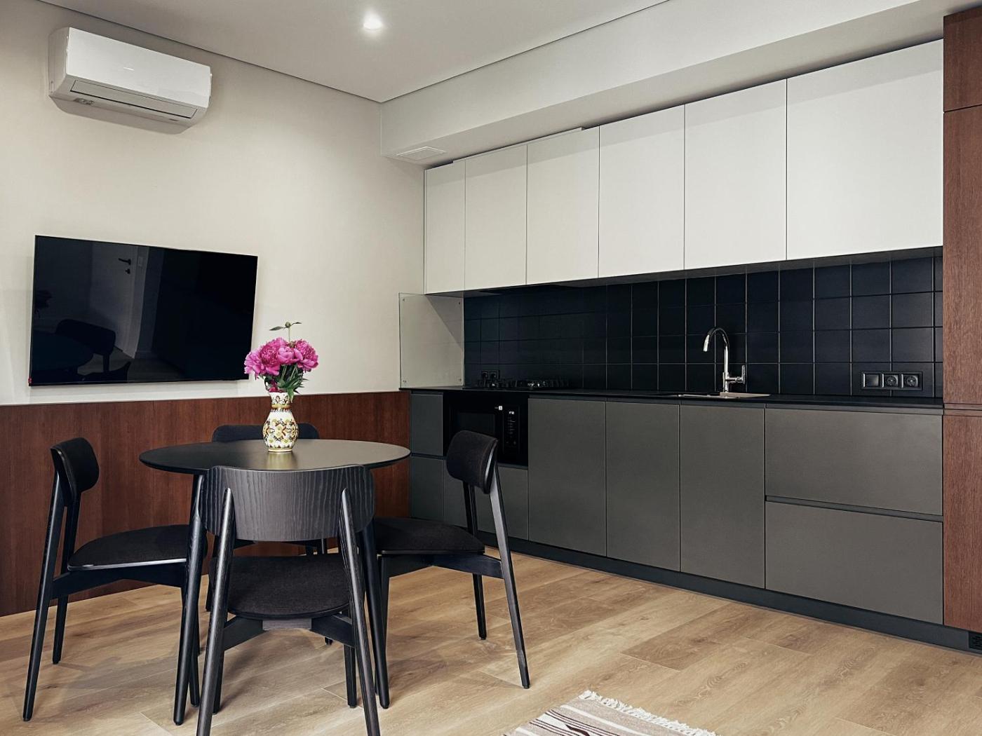 Standard Apartment. This apartment comes with 1 living room, 1 separate bedroom and 1 bathroom with a shower and free toiletries. Meals can be prepared in the kitchen, which features a stovetop, a refrigerator, a dishwasher and kitchenware. This apartment is air-conditioned and has a seating area with a flat-screen TV, a washing machine, soundproof walls, a tea and coffee maker, as well as a dining area. The unit has 2 beds. ;
